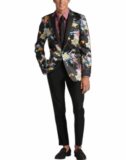 Stand out at your next formal event with this handsome evening-wear jacket by After Hours. This fine jacket features a richly detailed jacquard pattern with satin details throughout.