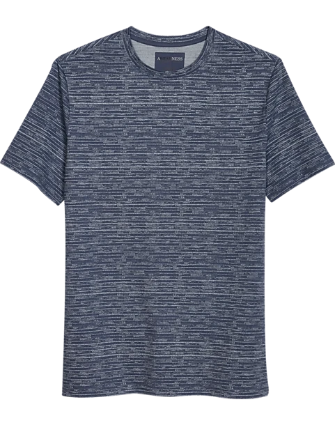 This stylish crew neck tee gets a fashion update with its handsome brush stroke pattern in blue. In a cotton blend, it makes an ideal layering piece.
