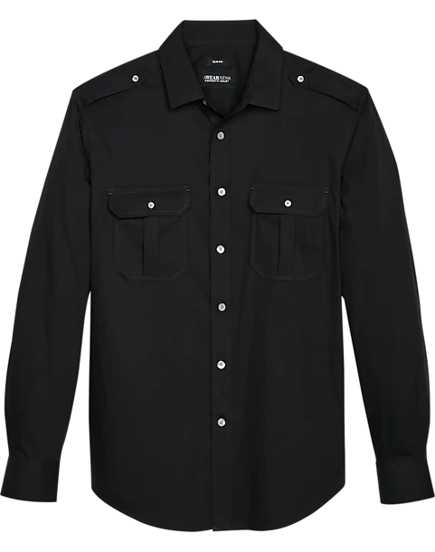 - 70% cotton 26% nylon 4% spandex|Spread collar|Epaulets|Button-flap chest pockets|Slim Fit|Awearness Kenneth Cole|