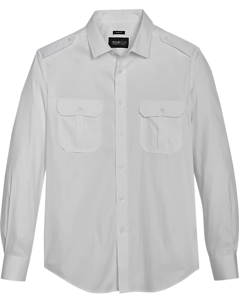 This classic long sleeve sport shirt features epaulets and the buttoned up details of a military shirt. This comfortable shirt is woven in a cotton blend twill fabric with stretch.
