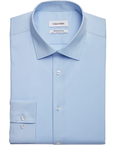 Calvin Klein Refined Cotton Stretch Supima Slim Fit Dress Shirt, Light Blue
