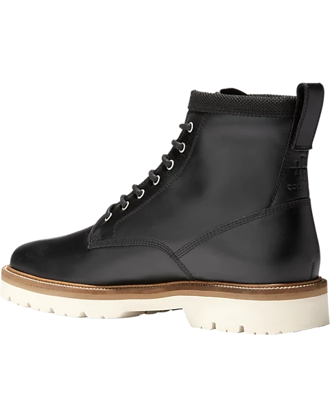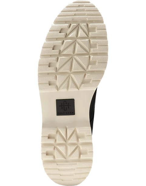 - Waterproof leather uppers and sealed seams to keep the elements out.|Round toe|Seven eyelets|Pull tab in back|Segmented rubber sole|Cole Haan is a global performance lifestyle brand with a 9 year heritage. Cole Haan infuses its products with time honored craftsmanship and modern innovation. Customers can wear their footwear from work to workout to weekend.|