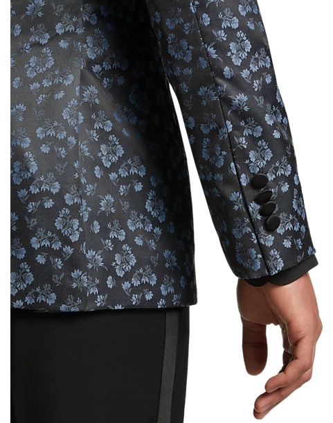 Reinvent your formal look with this standout dinner jacket by Egara. It features a satin finish, peak lapel and rich, dark blue and black floral pattern.