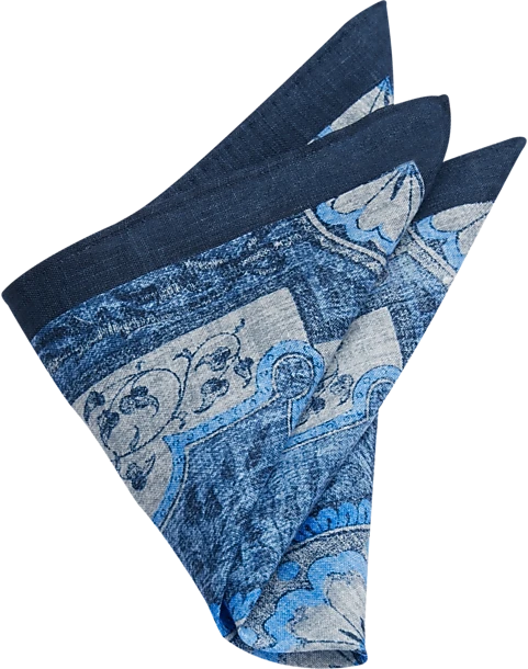 Joseph Abboud Linen Pocket Square, Navy & Blue Fresco