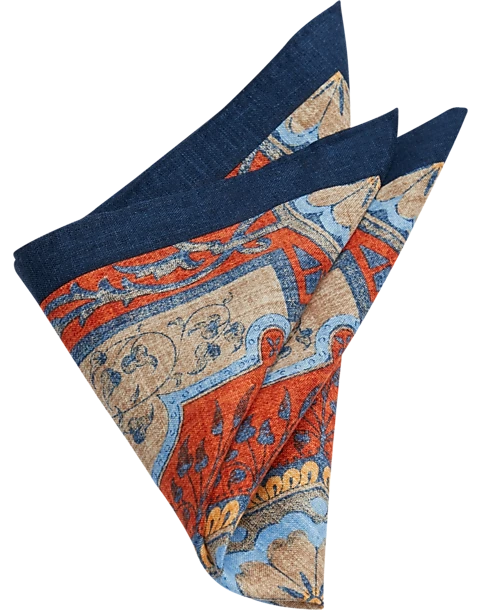 Joseph Abboud Linen Pocket Square, Navy & Rust Fresco