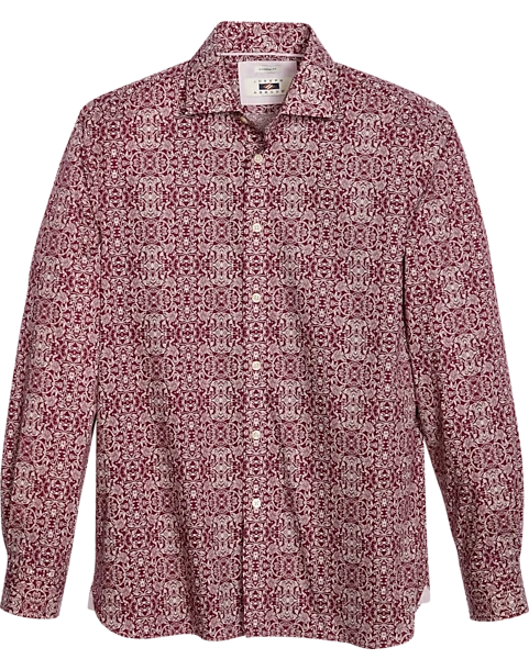 Brighten everyone’s day with this bold and vibrant brocade pattern. This fine sport shirt by Joseph Abboud features this rich and classic pattern on fine cotton with a spread collar and trim Modern Fit.