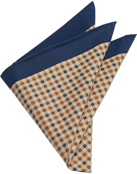 Joseph Abboud Pocket Square, Navy & Taupe Check