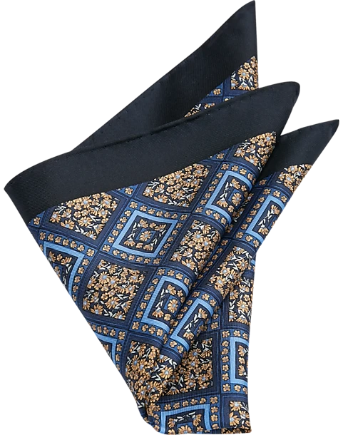 Joseph Abboud Silk Pocket Square, Navy Square Medallion
