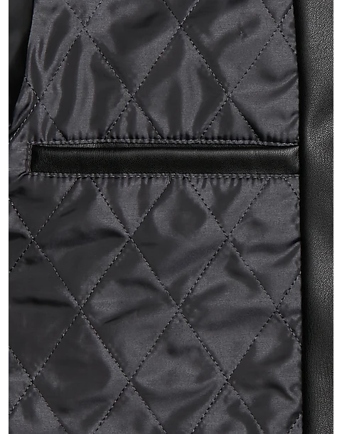 Michael Strahan Modern Fit Bomber Jacket, Black Faux Lambskin