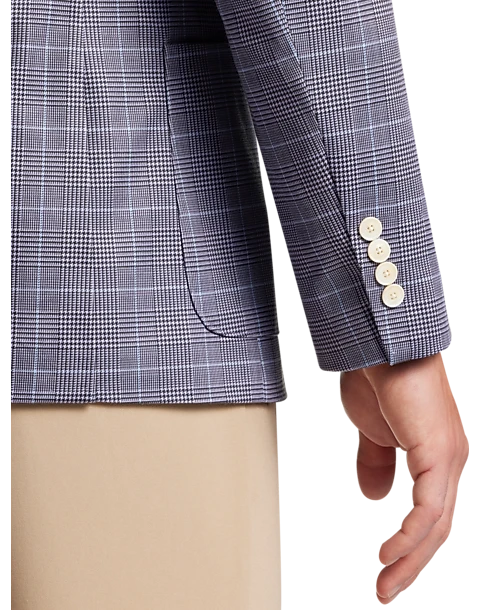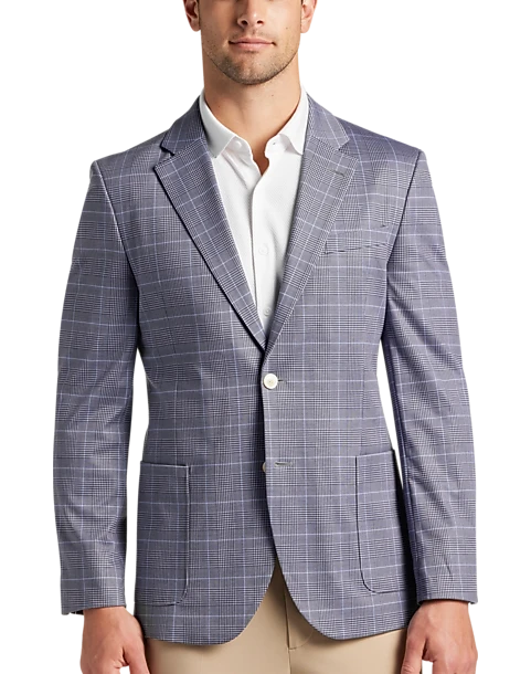 - 89% polyester 8% rayon 3% spandex|Notch lapel|Two-button closure|Patch pockets|Modern Fit|Michael Strahan|