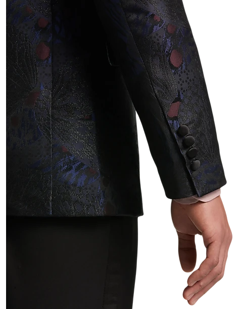 Make a chic, sophisticated statement with this finely crafted dinner jacket by Paisley & Gray. Featuring cool jewel tones woven into an intriguing floral pattern, it is tailored with a streamlined Slim Fit to offer a sleek, modern look for your next special occasion.