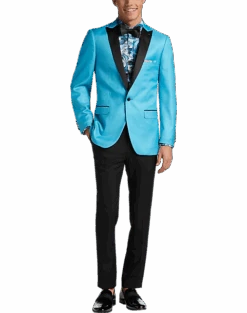 Sharp, stylish and guaranteed to turn heads, this double-breasted jacket from Paisley & Gray is a must for special occasions. It features a satin peak lapel, handkerchief pocket and a modern Slim Fit.