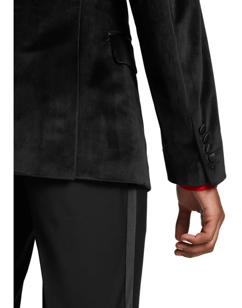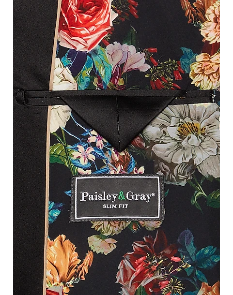 Sharp, stylish and guaranteed to turn heads, this double-breasted jacket from Paisley & Gray is a must for special occasions. It features a satin peak lapel, handkerchief pocket and a modern Slim Fit.