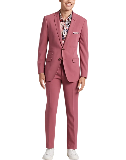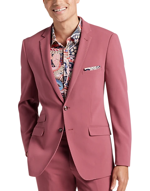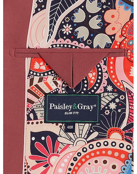- 74% polyester 24% rayon 2% spandex|Two button|Notch lapel|Side vents|Slim Fit|Coordinating pieces sold separately|Matching Coat: TMW_3XM2_3XM3_07|Paisley & Gray|
