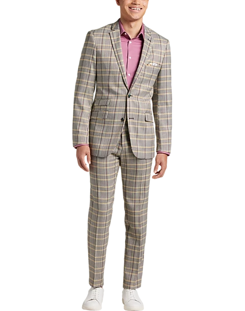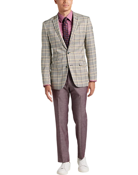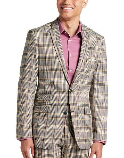 - 100% polyester|Two button|Notch lapel|Side vents|Coordinating pieces sold separately|Slim Fit|Paisley & Gray|