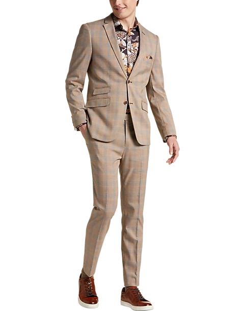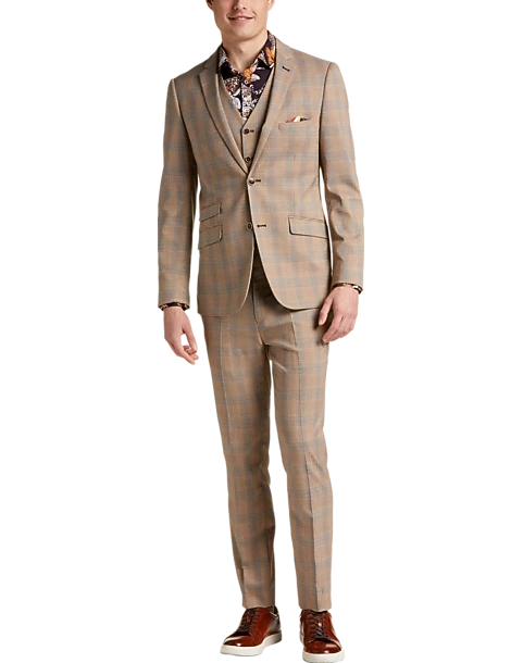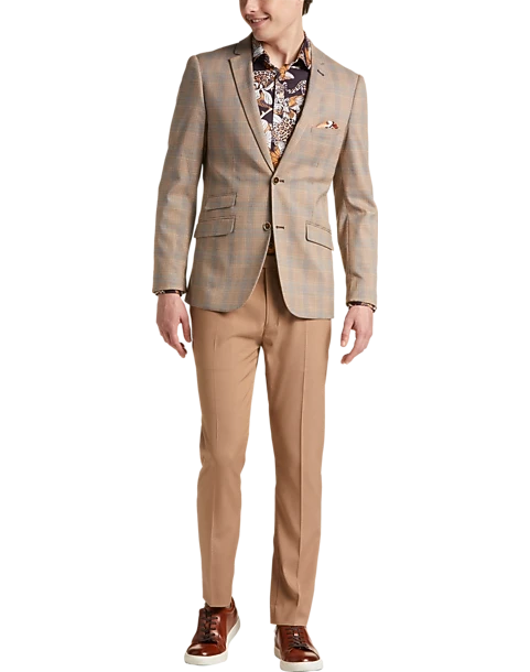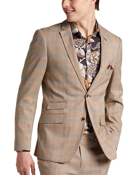 Step things up in a handsome coat that features a plaid pattern in tan and gray. It’s part of suit separates which lets you choose your coat, pants and vest sizes separately for your best fit ever.