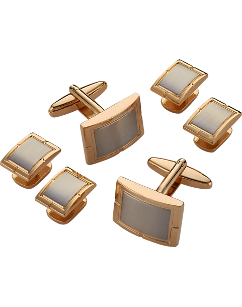 This fine cufflinks and studs set features a modern two-tone design in gold- and silver-tone metal. Wear it to complete your look.